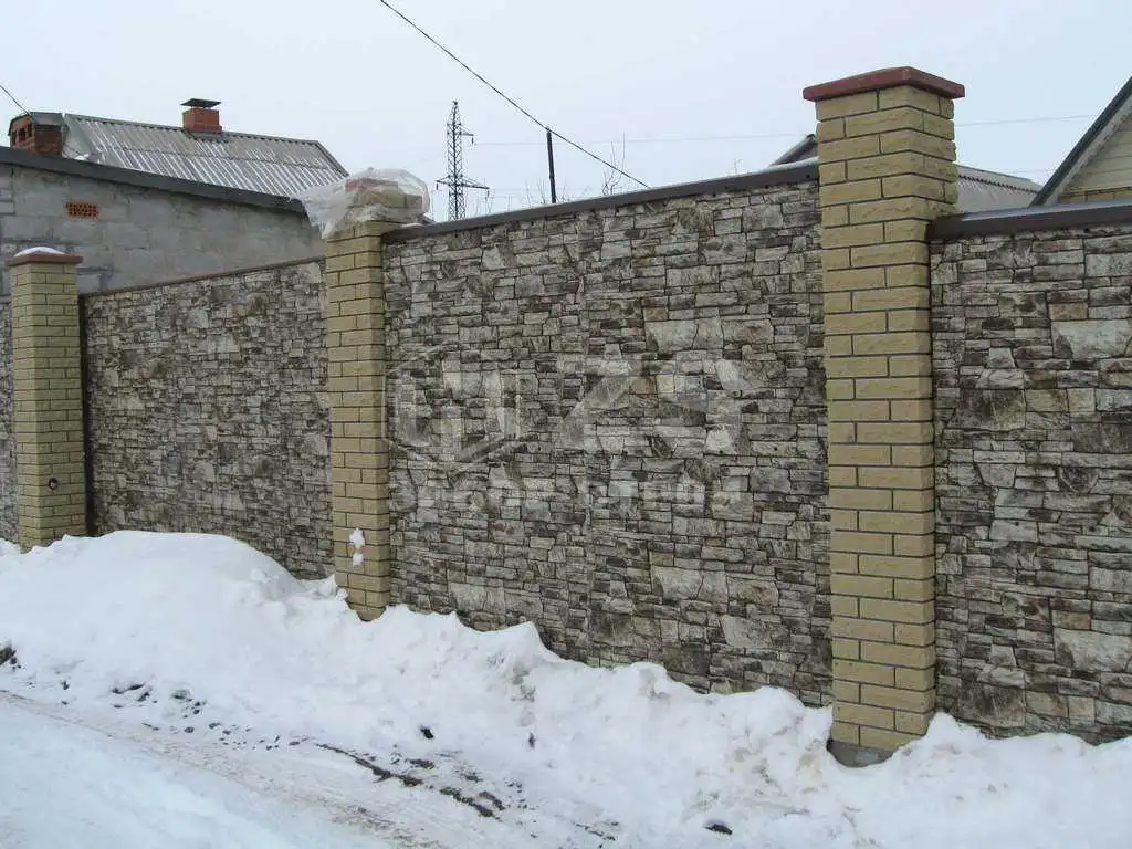 Ленточный с кирпичными столбами