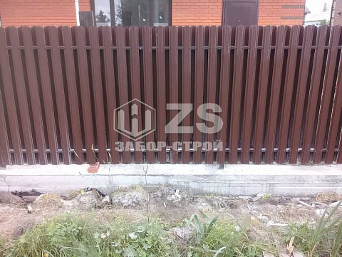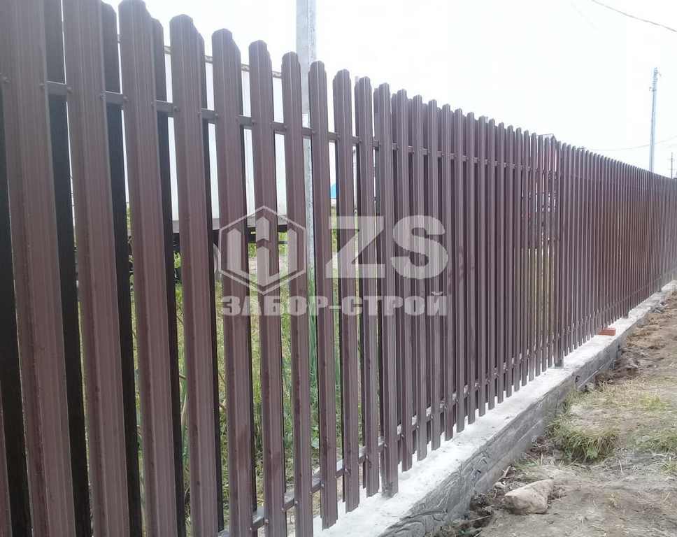 - Забор на ленточном фундаменте из евроштакетника 25 метров