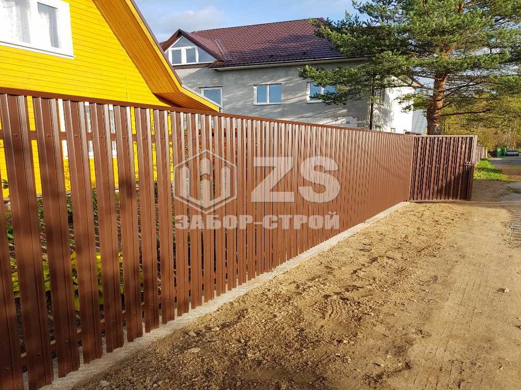 - Забор на ленточном фундаменте из евроштакетника 50 метров